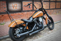 •Heckumbau (Fat Boy Fender)•Seitlicher Kennzeichenhalter•Ledertasche•LED All-In-One Mini-Blinker hi.•Kodlin Sonderlenker•Verstellbare Brems- und Kupplungshebel•Springergabel•Rockerboxen, schwarz pulverbeschichtet•Einzelfedersitz, Maßanfertigung•Dockingstation für Sissibar/Gepäckträger•Sissibar u. große Lederkoffer dabei•6-Gang Cruise Drive•Unfallfrei•Deutsches Modell•Gepflegter Zustand